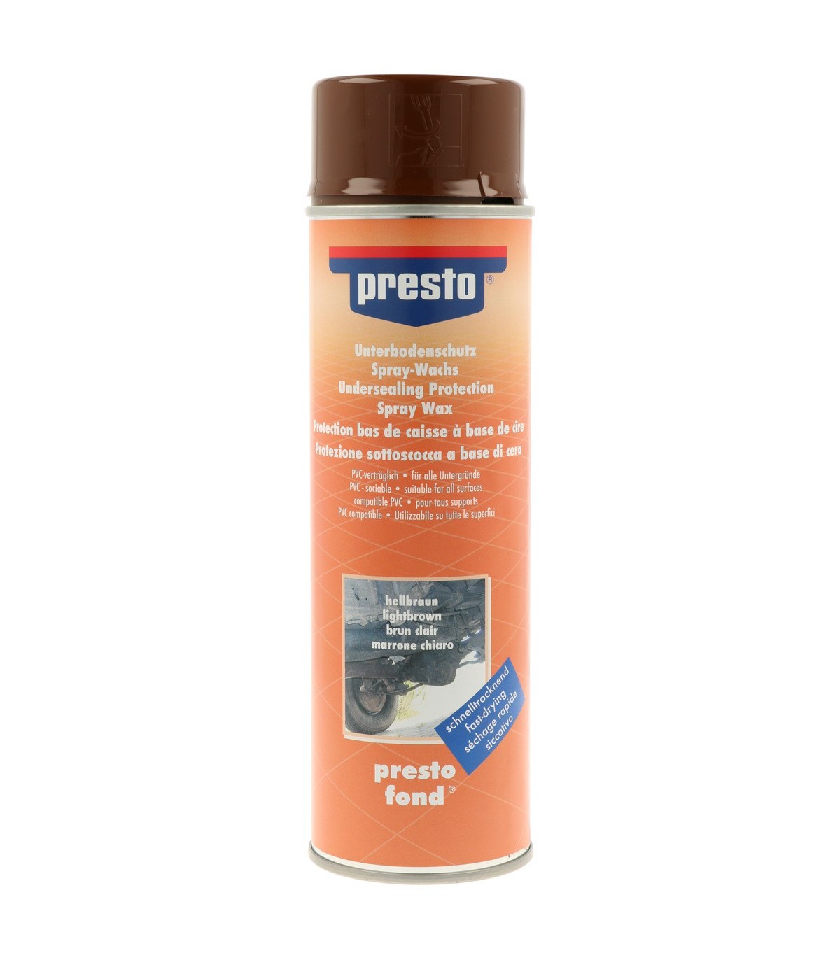 Ισχυρή αντιδιαβρωτική προστασία καθώς και προστασία για τις ζημιές από κτύπημα από πέτρες στο κάτω μέρος του αυτοκινήτου και του σασί αυτοκινήτω, φορτηγών δεξαμενών. Με βάση από καουτσούκ και ρητίνες δημιουργεί ένα ανθεκτικό στο χρόνο σκληρό, ελαστικό προστατευτικό στρώμα. Που δεν σπάει. Ανθεκτικό στη θερμοκρασία, παγετό και οξέα αλάτων . Στεγνώνει μετά από 1-2 ώρες. . Μπορεί να βαφτεί μόλις στεγνώσει. Δεν περιέχει CFC Οδηγίες χρήσεως : Οι επιφάνειες πρέπει να είναι καθαρές στεγνές χωρίς ίχνος γράσου. Προστατέψτε τη γύρω περιοχή. Ανακινήστε καλά πριν τη χρήση (τουλάχιστον για 2 λεπτά). Ψεκάστε από απόσταση 30 εκ. Ψεκάστε σε πολλές στρώσεις ανά 10 λεπτά. Μετά τον ψεκασμό, γυρίστε το σπρέι προς τα κάτω και ψεκάστε ώστε να καθαρίσει η βαλβίδα.