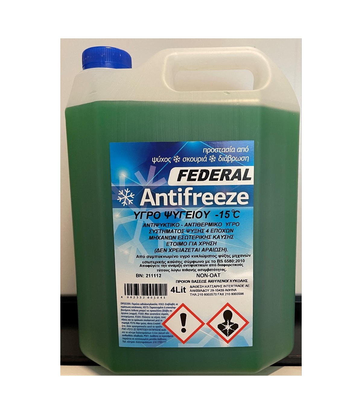 Αντιθερμικό και αντιψυκτικό υγρό για τα ψυγεία των αυτοκινήτων. Θερμοκρασία Προστασίας από -15°C έως +104°C.Περιέχει αντιδιαβρωτικά και αντισκωριακά πρόσθετα για την προστασία του ψυγείου και της μηχανής. Είναι κατάλληλο για όλα τα ψυγεία (και αυτά από αλουμίνιο).Προδιαγραφές σύμφωνο με BS 6580:2010 Xρώμα υγρού: πράσινο