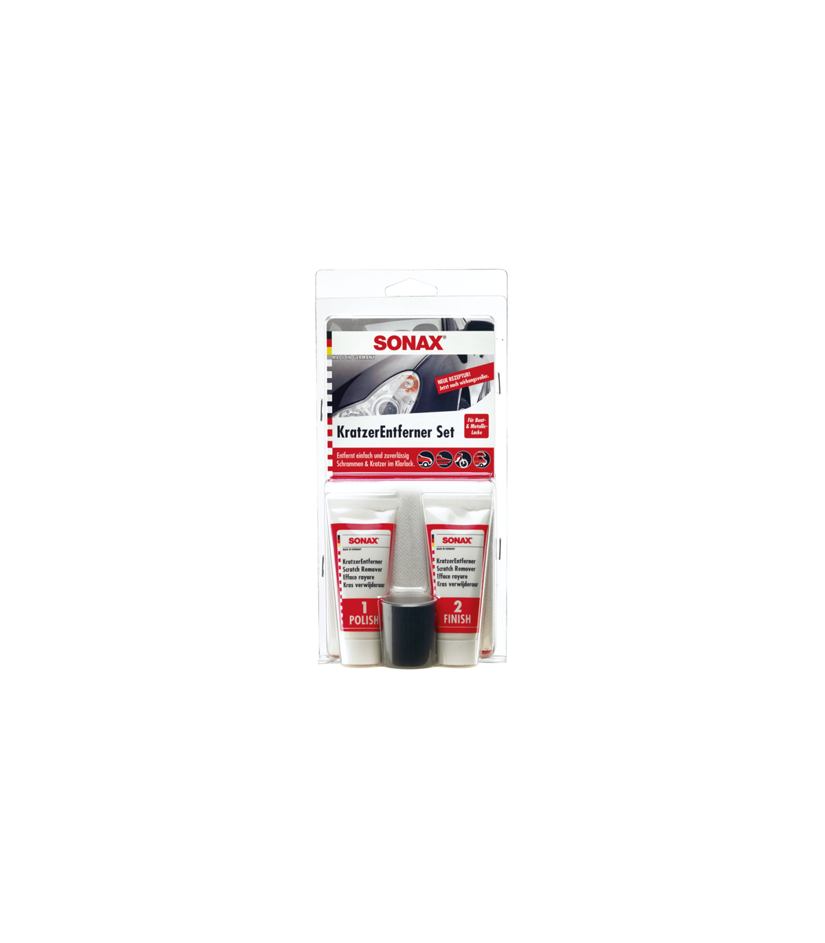 Ένα ειδικό σετ για την απομάκρυνση των ενοχλητικών γρατσουνιών από το βερνίκι του χρώματος. Με 2-3 απλά βήματα ακόμη και βαθιές γρατσουνιές μπορούν να απομακρυνθούν χωρίς να μείνουν σημάδια, με την προϋπόθεση, οι γρατσουνιές να μην προχωράνε στο βασικό χρώμα η τη βάση του χρώματος. Κατάλληλο για όλα τα απλά, μεταλλικά και ανθεκτικά σε γρατσουνιές χρώματα. Δεν περιέχει χρώμα.