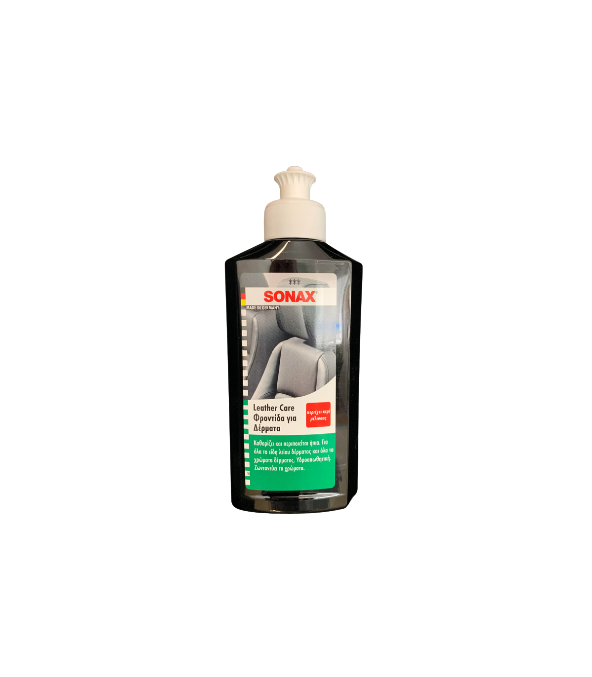 Υψηλής ποιότητας λοσιόν για τον απαλό καθαρισμό των δερμάτινων ταπετσαριών του αυτοκινήτου. Τα ειδικά κεριά και η σιλικόνη που περιέχει κρατούν το δέρμα μαλακό. Επαναφέρει τα χρώματα τη μυρωδιά και την υφή του χρώματος.