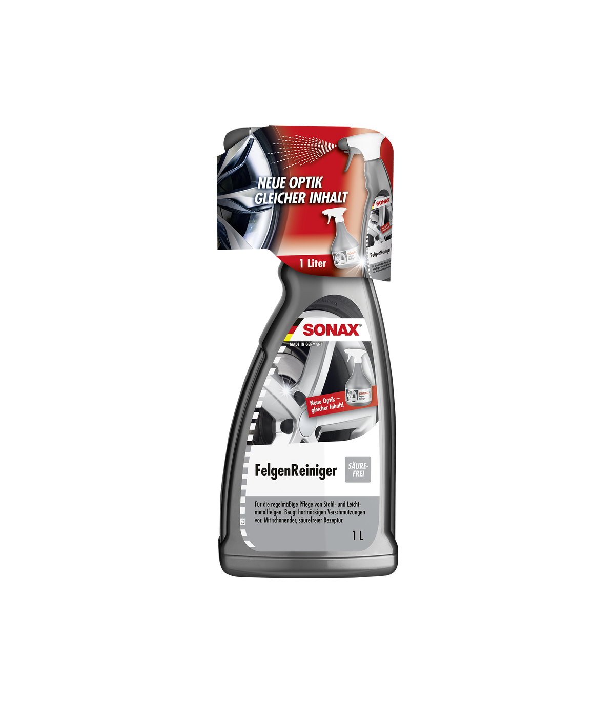 Καθαριστικό για όλες τις ζάντες από σίδερο και αλουμίνιο. Καθαρίζει τη βρωμιά όπως σκόνη από φρένα, λεκέδες πετρελαίου και άλλες βρωμιές από το δρόμο. Τέλειο για το συχνό καθαρισμό των ζαντών. Ιδιαίτερα οικονομική συσκευασία 1 Λίτρου. Δεν περιέχει οξέα !