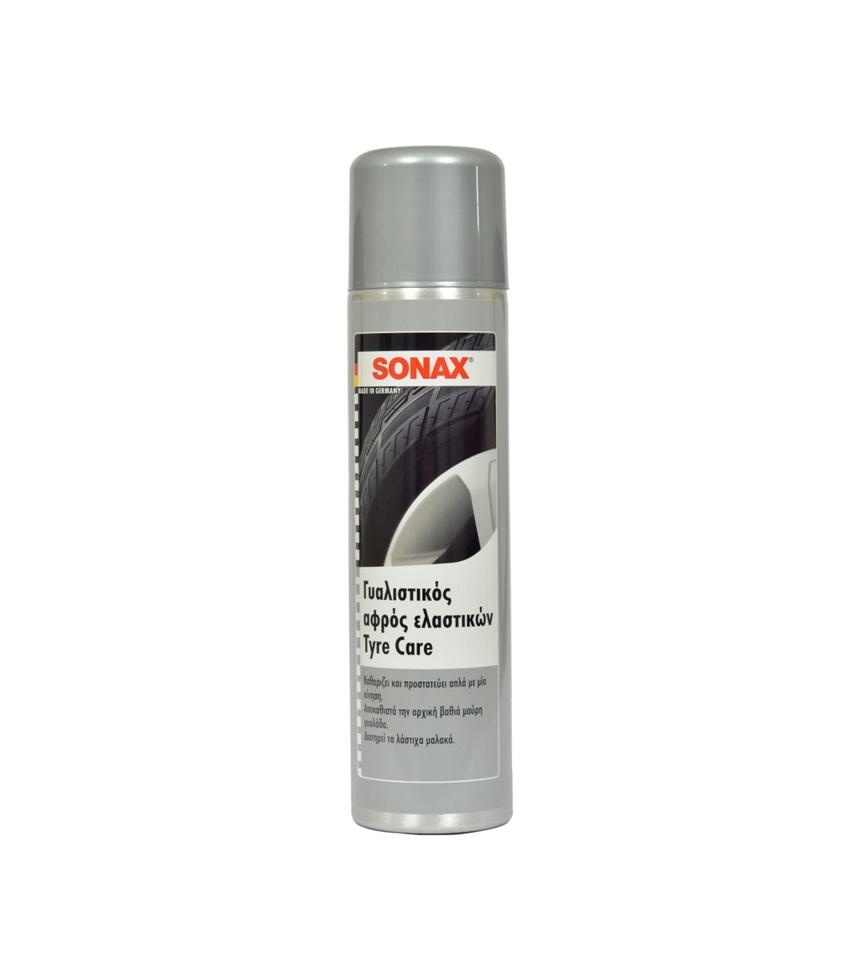 Καθαρίζει, προστατεύει και περιποιείται τα ελαστικά των τροχών του αυτοκινήτου με μία κίνηση. Απλά ψεκάστε πάνω στα λάστιχα και έτοιμοι. Καθαρίζει όλες τις βρωμιές δίνοντας γυαλάδα στα λάστιχα.