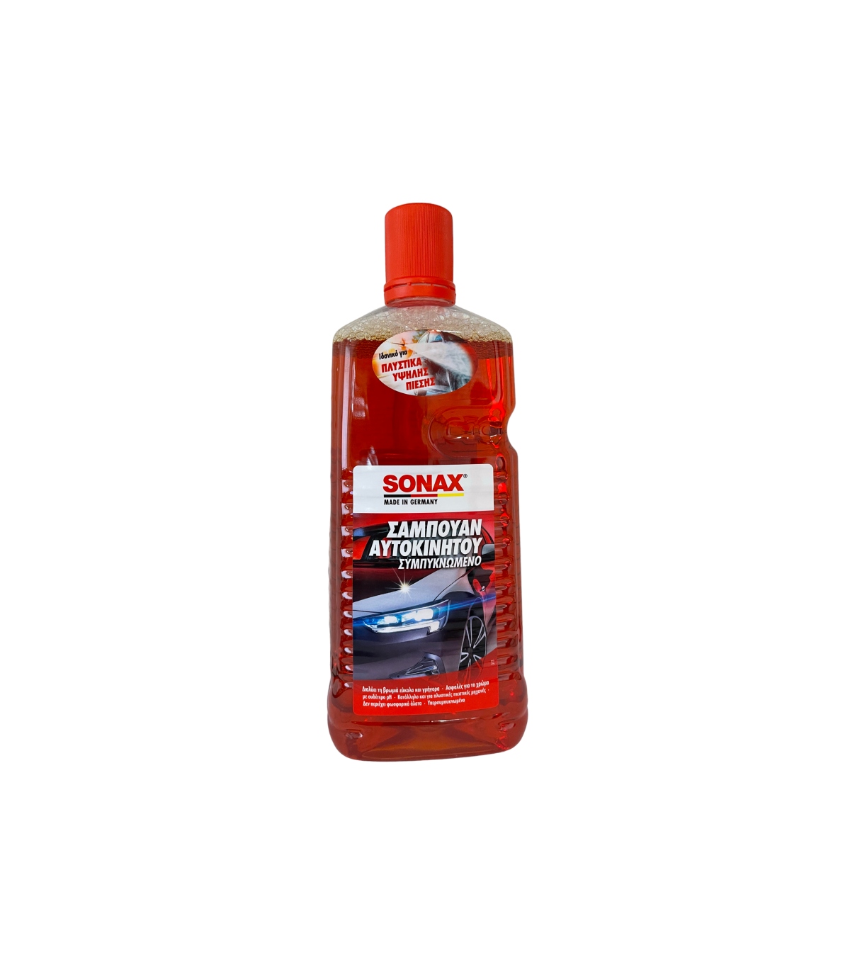 Ο∆ΗΓΙΕΣ ΧΡΗΣΗΣ: • Ξεπλύνετε τις λάσπες µε νερό και πίεση. • ∆ιαλύστε 2-3 καπάκια σαμπουάν σε 10 L νερό. • Πλύνετε το αυτοκίνητο µε σφουγγάρι SONAX Multi. • Για χρήση σε πιεστικές µμηχανές , προσθέστε στο δοχείο του απορρυπαντικού διαλυμένο 1:3 µέχρι 1:5 (ανάλογα µε τη βρωμιά) και ακολουθήστε τις οδηγίες του κατασκευαστή του πιεστικού. • Ξεπλύνετε µε νερό και στεγνώστε µε συνθετικό δέρμα SONAX. • Μη το αφήσετε να στεγνώσει πάνω στο αμάξωμα. • Προστατεύστε τη συσκευασία από τον παγετό. Για να προστατέψετε το χρώμα χρησιμοποιήστε το κερί της SONAX